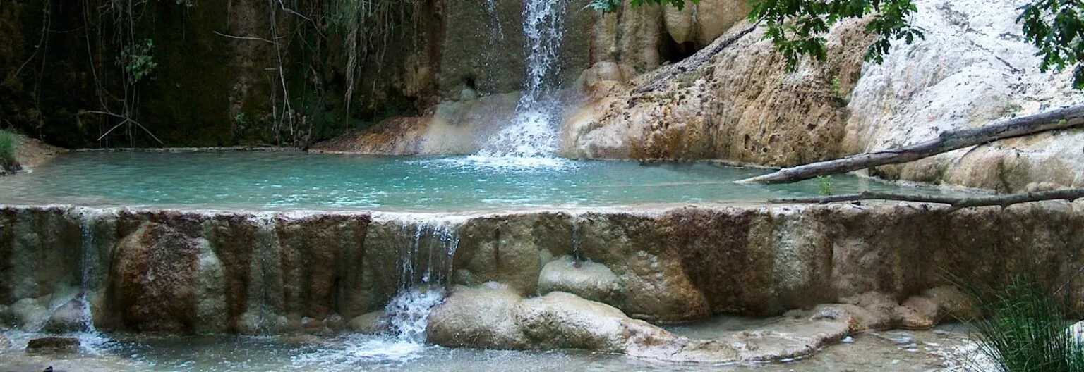 The whole area is not only relaxing, regenerative and healing but it it also enchanting: a breathtaking scenography, a whitish bloom, the puddles, the calcareous deposits, imposing trees, flourishing nature, sparkling stones aand mazing waterfalls, among them, the Balena Bianca, the white whale.